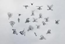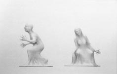 Menselijke figuren gevangen in een soort film van ‘water’. Ze beelden het karakter van golvend water uit….